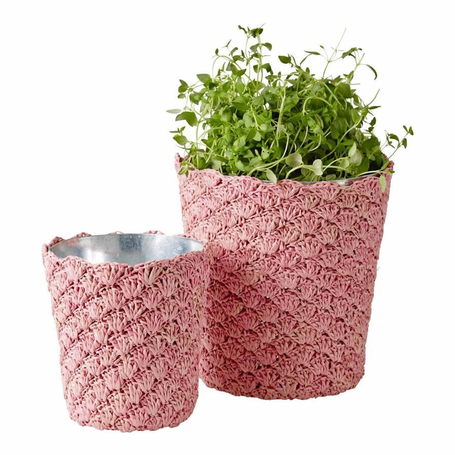 Häkel-Übertopf in schönem rosarot.
